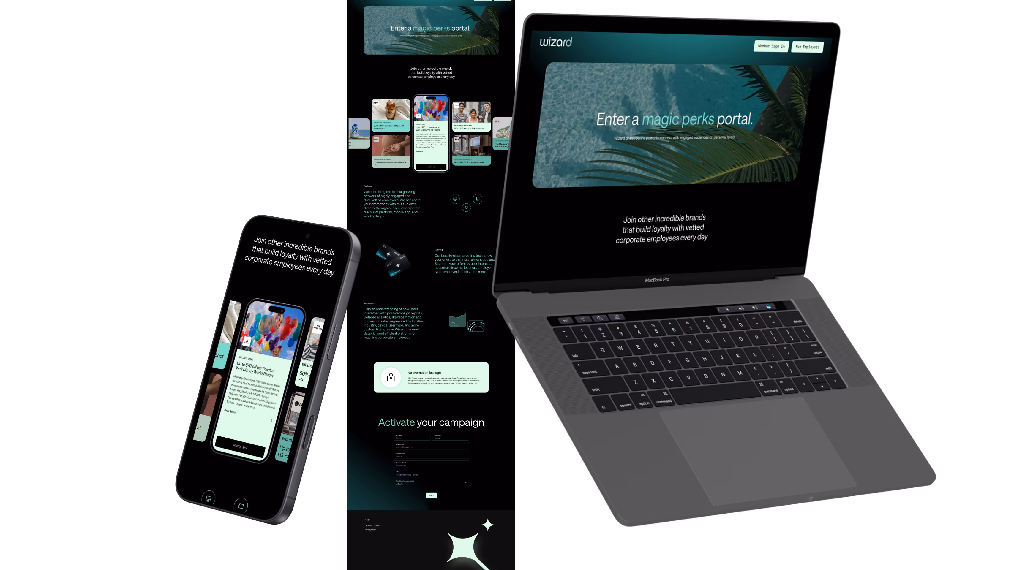 The project faithfully brought The Working Assembly's design vision to life, creating an immersive experience that showcases Wizard Perks' platform to their enterprise audience.